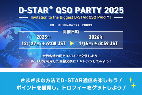 この年末年始、D-STARでのQSOを楽しめる、恒例の「D-STAR QSO PARTY 2025」が開催される。