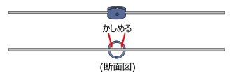 1) 4mm径樹脂パイプを固定具に挿入し、真ん中で固定します。