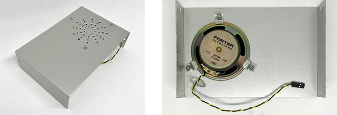 150×100×40mmのアルミケース(タカチ製)を加工して基板やその他部品を組み込んでいます。上カバーには、スピーカーを取付けています。スピーカーはラジオの音をできるだけ歪まずに鳴らしたいことから大きな容量のものを選びました。