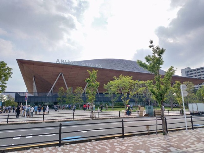 モバイルシャックをパネルに日が当たるよう南に向けて停車します。これにより昨晩冷房に使用した電力をある程度取り戻すことができます。モバイルシャック内で少しの時間休憩したあと会場の有明GYM-EXに向かいます。着いた時にはすでにもう行列ができていましたがまだ数十人程度でした。開場時刻の少し前、会場のシャッターが外の係と連絡の為かほんの少し開きました。たまたま最前列に座っていた私はこの日のブランニューモデル展示状況が見える場所でした。