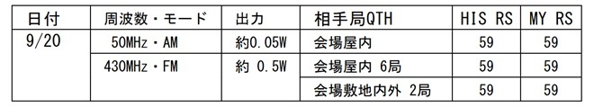 北海道ハムフェアでは今年のハムフェア同様に無線運用は混信対策として、出力が1W以下とされていました。会場ではアマチュア局は144MHzと430MHz限定で「ハンディー機で遊ぼう」というイベントを行っていたことから、21日の午後に参加してみました。8局以上の交信にて50名限定で景品が頂けるというものでした。筆者は430MHz・FM 0.5Wで交信を行い、IC-705の使用でも参加可ということでエントリーしました(48番目の達成と記憶しています)。筆者は8局QSOするのに1時間程度を要しました。また、久しぶりに50MHz・AMでQSOをしました。こちらは1%設定(0.05W相当)で行いました。交信結果は以下になります。