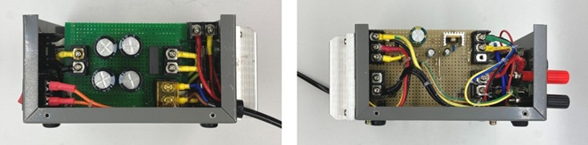 読者の方々がLM338Tを使ってこの電源を製作するときの注意として、10本で300~500円程度のLM338Tは規格外品の可能性が大であると思われることです。通販業者で購入したICで今回の製作を行ったところ電流容量は5Aどころか2Aも取れないものが混ざっていました。出力電圧を10Vにセットし、抵抗負荷を接続して電流を増加していくと2A近くになると出力電圧が徐々に低下しました。もちろんこのICは返品し、返金を受けました。少々割高になりますが後ほど購入した1個500円ぐらいのICに交換したところ正常に動作しました。