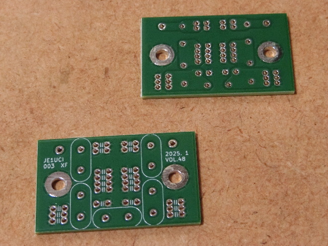 今回は基板2枚一組で110円の切手を入れて下さい。過去の基板と同時でも結構です。あまり多量になる場合はSASEでは無理ですので、個別に相談に応じます。なおキットではありませんので、部品は御自身で集めて下さい。計算も御自身でお願いします。