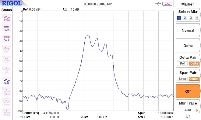 測定結果2 4.5MHzのクリスタルを使った結果(インピーダンスが合っていません)