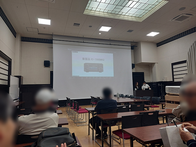 JAIA講演では、アイコム株式会社の営業担当者より、8月のハムフェアで発表されたIC-7300MK2の概要の説明があり、新機能(CWデコーダーなど)追加や国内初のHDMI端子搭載による大画面での運用などの説明があった。