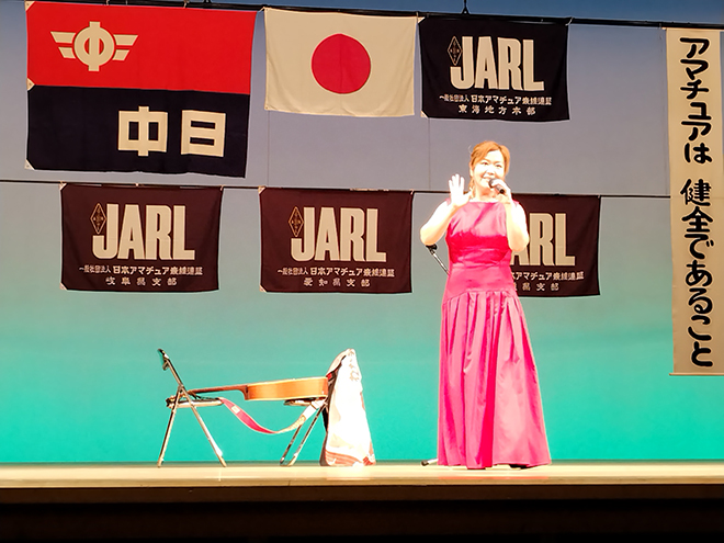 ミニコンサートは、渡部まいこ氏(JJ0SDQ)、Masaco氏(JH1CBX)、青木小夜子氏(JJ3WWS)の3人が出演した。
