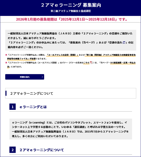 JARDホームページに掲載された「2アマeラーニング募集案内」より