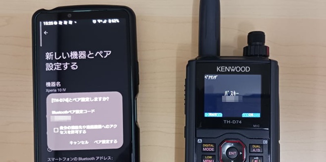 → TH-D75/D74とAndroid端末の双方にパスキー表示されたら「OK」で設定。