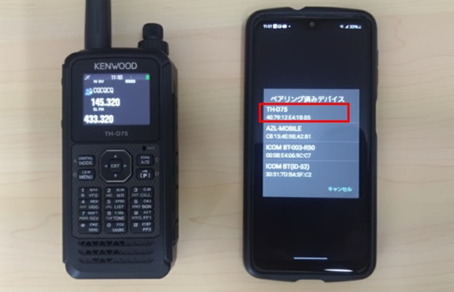 ペアリング済みデバイスで、TH-D75(またはTH-D74)を選択。