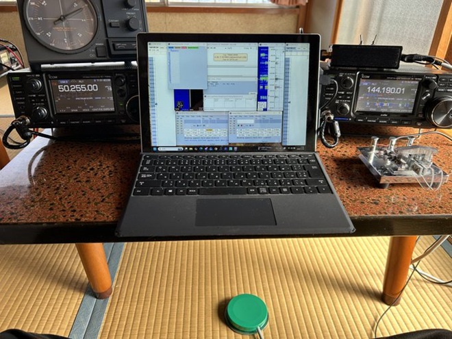 写真はJI1PUC/1御岳山のシャックです。彼は多摩川コンテストだけでは足りなかったのか、サバイバルコンテストへの参加やPOTAのアクティベートもして下山されたようです。