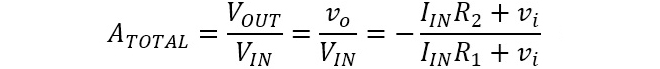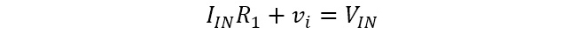 図2において、入力電圧VIN は増幅器には直接入力されず、直列抵抗R1 を介して入力されます。増幅器は電圧増幅度AV =