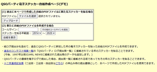 パソコンで「QSOパーティ電子ステッカー台紙作成ページ(デモ)」にアクセスする。