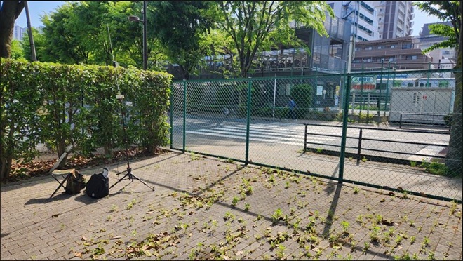 最初は住宅展示場近くの金網に囲まれた「おおくぼ そよかぜ橋 飲食スペース」でCQを出しましたが応答はありませんでした。仕方なくコンテスト周波数にQSY、入感していたALL JA参加局3局(埼玉、東京、神奈川)とQSOできました。続いて、高田馬場方面に徒歩移動して都立戸山公園にて運用をしました。アンテナはビデオ三脚にHF6CLSを取り付けての運用でした。運用時間は1時間ほどでした。戸山公園での実績は以下の通りです。