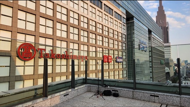筆者の定番移動場所? バスタ新宿がある駅ビル7階屋上での運用でした。運用時間は90分程度。アンテナはHF6CLSです。