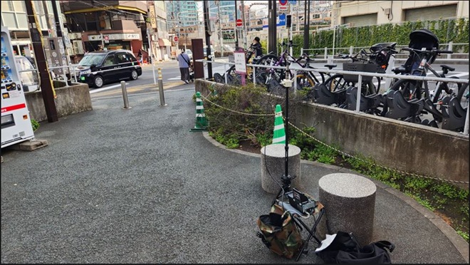 埼京線をアンダーパスした東口の前にある自転車置き場を含む公園で椅子を見つけたのでこの場所で運用しました。運用時間は45分程度で、アンテナはHF6CLSを使用しました。