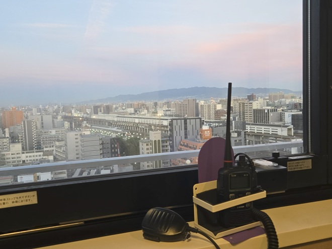平日の夕方から夜は新大阪駅そばのホテルの部屋(32階中17階)にて50MHz・SSB、144MHz・SSB、430MHz・FMにQRVしましたが、やはり50MHzでのQSOはできませんでした。