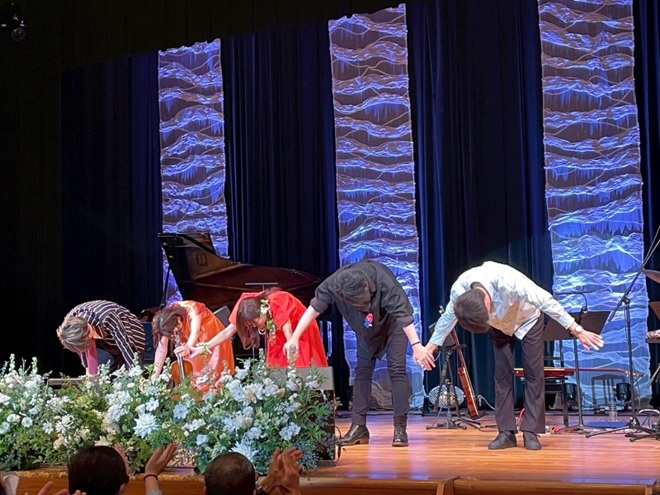 この一年、毎週末、イベントのお仕事をいただく中で、並行して自分発信のコンサートに向け、全力を注ぎました。11月9日、明石・子午線ホールでの「ふるさとコンサート」。一日中雨予報でしたが、ステージ直前に雨がやみ、胸が温かくなりました。同級生やご近所の方、遠くから駆けつけてくださった皆さん、たくさんの応援に心から感謝しています。このコンサートでは、新曲を披露することができました。間に合ったんですよ!!! なんと3曲も!!! すごいよね!? 私(笑)! 最後のあがきで3曲仕上げました。それよりもその3曲を数日前の短時間しかない中で、スーパープレイしてくれた奏者の力量がすごかったです! ステージで拍手や笑顔に触れると、歌を届ける喜びと受け取ってくださる皆さんの温かさを改めて感じます。コンサート後の感想も何よりの励みになっています。皆さんはいろんな選択肢の中で時間を作って、私のステージに来てくださる。だからこそ来てよかったと思えるものを提供することが私の役目。その想いに応えることができた瞬間、また次もやろう、続けていこうという気持ちが湧きあがります。東京から駆けつけてくれたバンドメンバーは15年以上支えてくれいます♪ あのステージにあふれていた温かい空気、全員が一つになった瞬間、あれこそが“大きな福”でした。