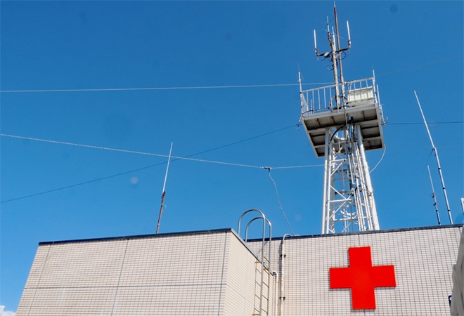 大林さんと、日本赤十字社和歌山県支部事業推進課長の小森さんのご案内で、日本赤十字社の無線車や屋上のアンテナなどを見せていただくことになりました!