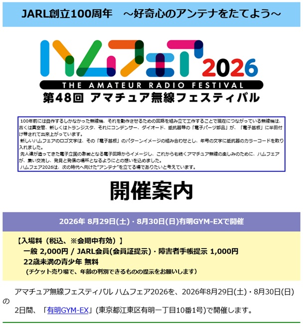 ●第48回アマチュア無線フェスティバル(ハムフェア2026)