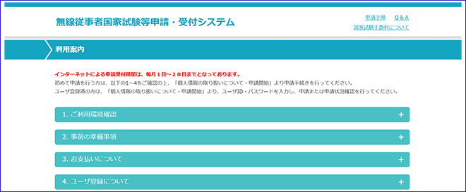 無線従事者国家試験の受験申請は専用ページから受付期間内に行う