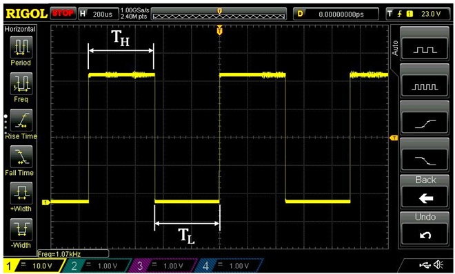 図8. 1kHz出力時のデューティ比は約50%(TH≒TL)