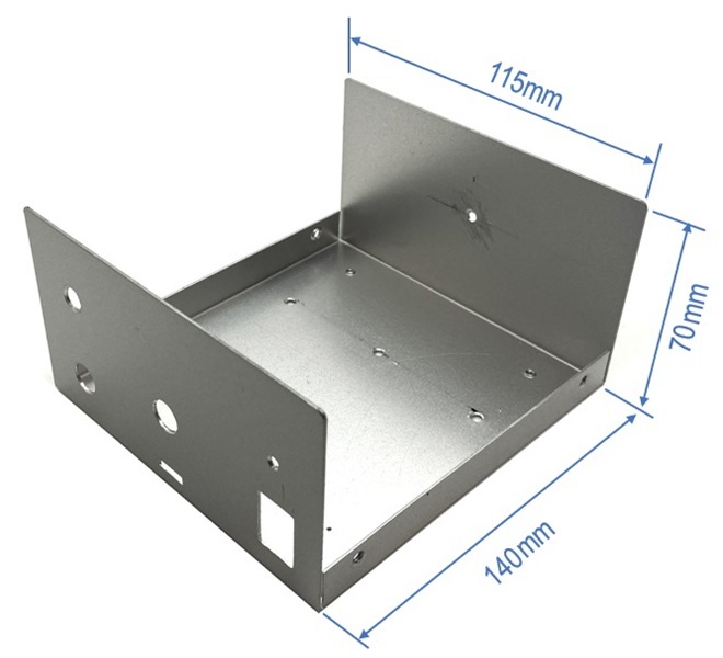 先に回路図から示しましたが、物理的な製作過程を説明します。ケースは115mm(W)×140mm(D)×70mm(H)の金属製のケース(LEAD製)を使用しました。組み込むPCBやスイッチ類、それに単三乾電池(4本)ケースのスペースを考えてケースに予め穴を空けたものが図9です。