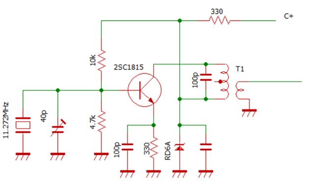 次にキャリア発振回路ですが、図3がオリジナルです。水晶によっては周波数が合わせられない時がありました。また、電源の安定化に6Vのツェナーダイオードを使っていました。