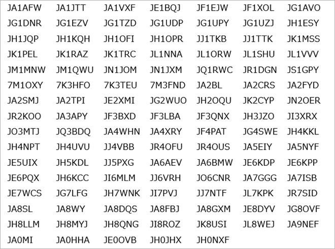 JARL会員課から発送した調査ハガキが「転居先不明」などの住所不明で、届かなかった局のコールサイン(JARL Webより)