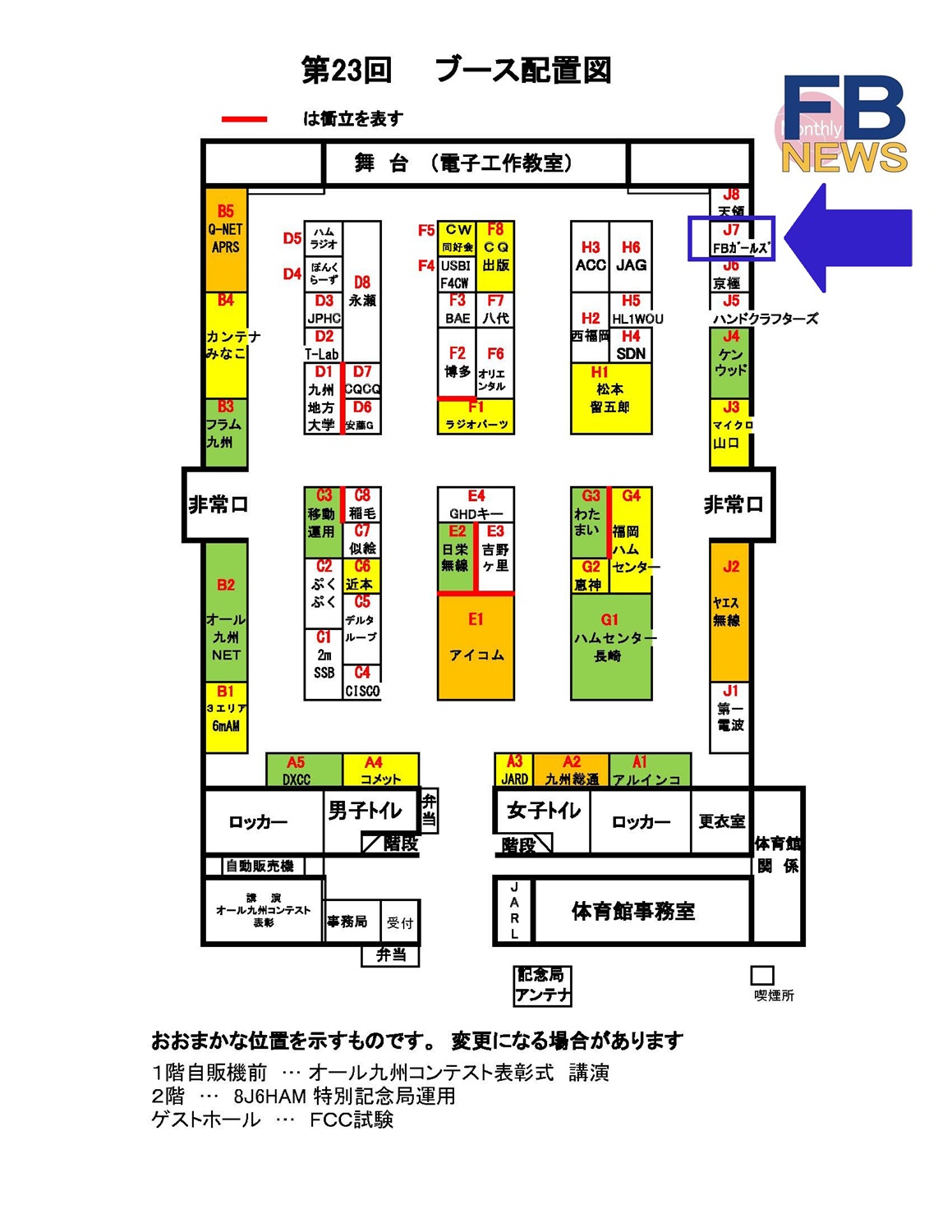 月刊FB NEWSは、FBガールズレディオクラブ(JL3ZGL)として、出入口より右奥の「J7」にブースを出展する。公式SNS(X、Facebook)のフォローキャンペーンや、クリアファイルの配布を行う予定。また、歌手Masacoさん(JH1CBX)がCDやグッズ販売を行う予定だ。