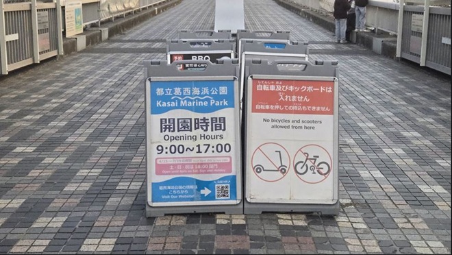 - (ア)まず、最初に向かったのが葛西海浜公園のはずでしたが、スタンプ台の置かれた葛西海浜公園管理事務所は葛西臨海公園内にありました。葛西海浜公園は葛西臨海公園から葛西渚橋を渡った先にあります。今回は管理事務所の傍のベンチ(葛西臨海公園)での無線運用になりました。ここでの運用時間は20分程度でした。到着後すぐにCQを出すも応答なく、聞こえる局を呼ぶことにした結果、3局とQSOできました。いずれ、葛西海浜公園での運用も行いたいと思っています。