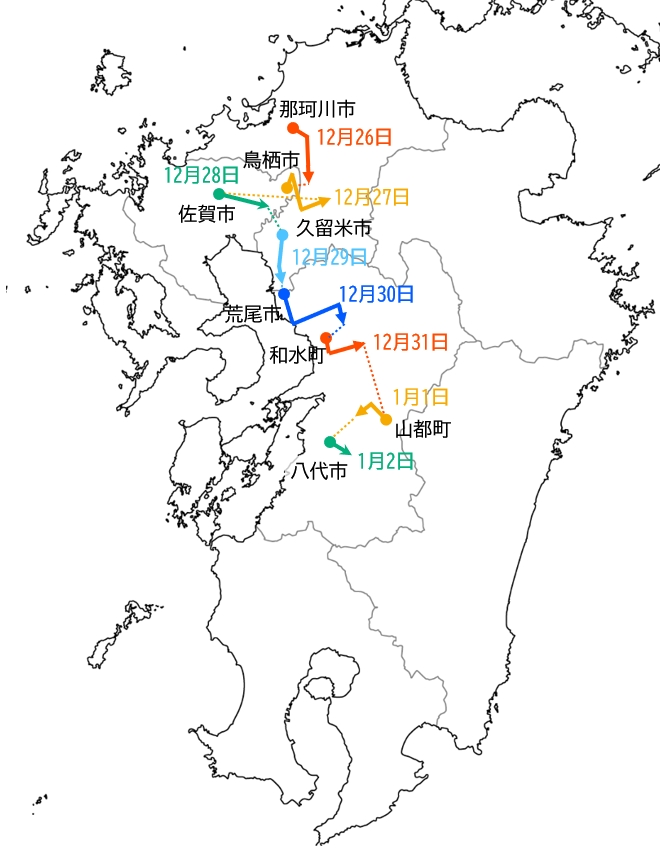 2025年の年末も、気候が温暖な九州地方で長期の移動運用を計画しました。今回は、その中でも九州北部を中心に巡る予定を組みました。