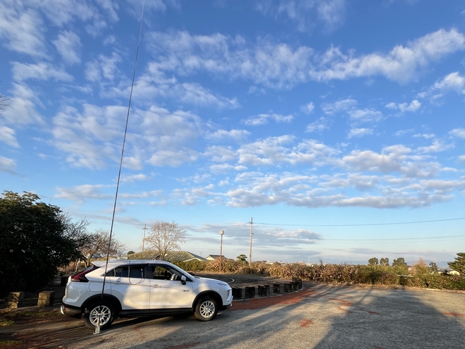 5市町とも、事前に地図で調べておいた公園で運用しました。年末休みに入っていたこともあり、スポーツ大会等の大規模な行事は無く、場所の確保は容易でした(写真3)。10時台には18MHz帯が良く聞こえて、神埼市で30QSOを記録した以外は、ハイバンドの目立ったオープンは見られませんでした。夕方の三養基郡みやき町では7MHz帯で113QSOを記録しました。