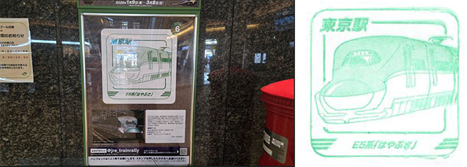 左: 東京駅スタンプ台 右: 東京駅E5系