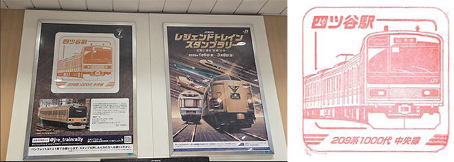 左: 四ツ谷駅スタンプ台 右: 四ツ谷駅209系