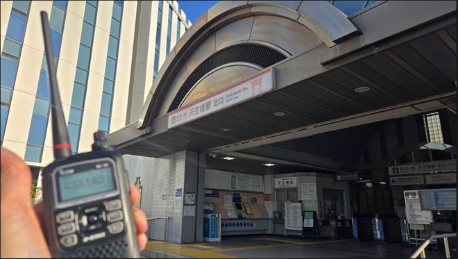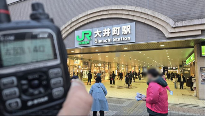 天空橋駅からは京急電鉄経由で大井町駅へ向かいました。大井町駅での運用場所は「きゅりあん」側バスロータリー2階の広場でした。2階とはいえ、コンクリートジャングルの中、ここでもバンド内は閑散としていました。幸いに天空橋駅での交信局がコールしてくれました。