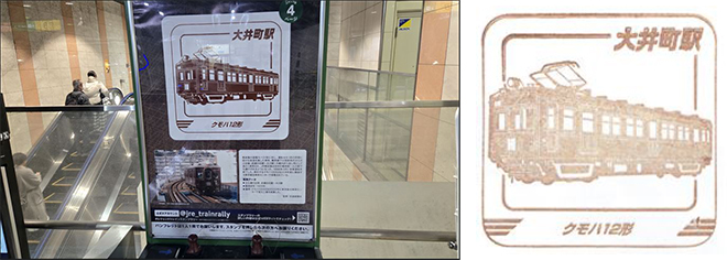 左: 大井町駅スタンプ台 右: 大井町駅クモハ12形