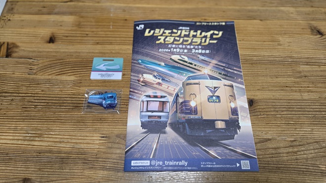 恵比寿駅でのスタンプ押印とQRVが終わり、第1ステージ・10駅達成できたことで、新宿駅に移動して駅売店・NewDaysにて景品を受け取りしました。受け取りにはNewDaysでの物品購入が条件となっていました。景品はレジェンドトレイン・アクリルスタンドと第2ステージ用スタンプ帳でした。