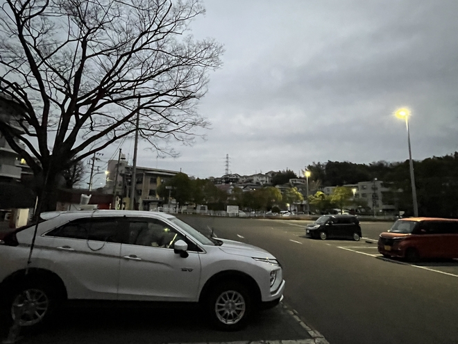 続く川崎市川崎区では、事前にいくつか駐車場の候補を考えていたものの全て満車で、運用場所の選定に手間取りました。HF帯の運用であれば、周囲に多少の山や建物があっても電離層反射で上空に向けて電波が飛べば交信できますが、サテライト通信では、衛星が来る方向に建物が無いことが必須条件で、都市部での運用には苦労しました。