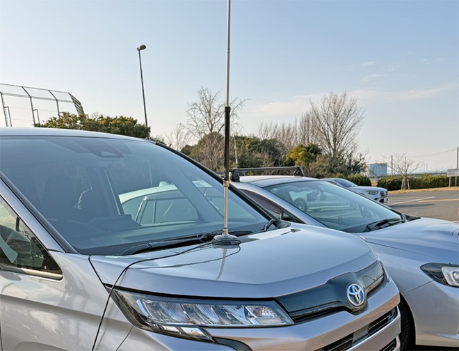 HF帯のアンテナは、ワゴン車の屋根に強力なマグネット基台を取り付け、全長5mのホイップアンテナ(7MHz帯用)を立てて運用し、もしもコンディションが悪ければ、その基台を給電部にしてワイヤー式のツェップライクアンテナ(全長12m)を張る計画でした。