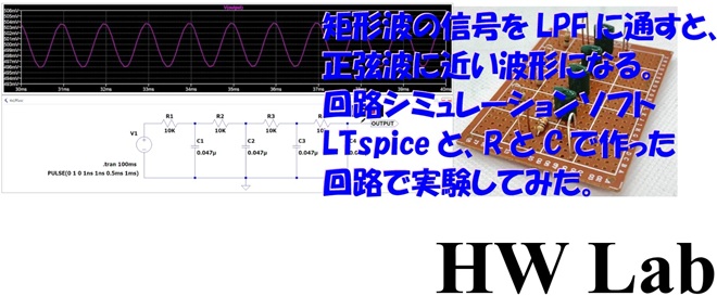 次ページは「シミュレーションで得た結果を実際の抵抗とコンデンサで作ったRC LPFで確かめる」