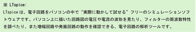 実際に抵抗とコンデンサで回路を組んで波形観測するのは早道ですが、このような方法もあることの紹介も含めて説明します。回路シミュレーションソフトで使用するソフトはフリーのLtspiceです。