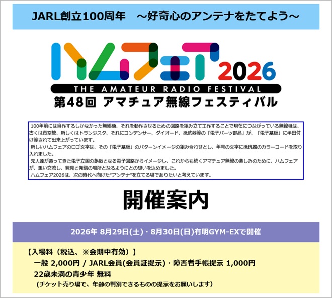 ●第48回 アマチュア無線フェスティバル(ハムフェア2026)