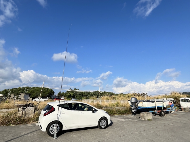 豊見城(とみぐすく)市では、いつも利用している海に面した広い駐車場を利用しました。最初は九州方面だけが強力に聞こえていたものの、次第に伝搬のコンディションが上がり、昼休み時間帯を過ぎると28MHz帯で1エリアが聞こえ始めました。しかし、次の運用地まで時間がかかりそうなため各バンド再巡回の延長戦は断念しました。