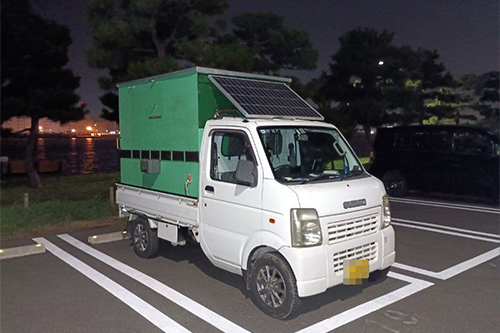 太陽光パネルをパワーアップし、電力的にも空力面でも向上した軽トラモバイルシャックでハムフェア会場に向かいます。