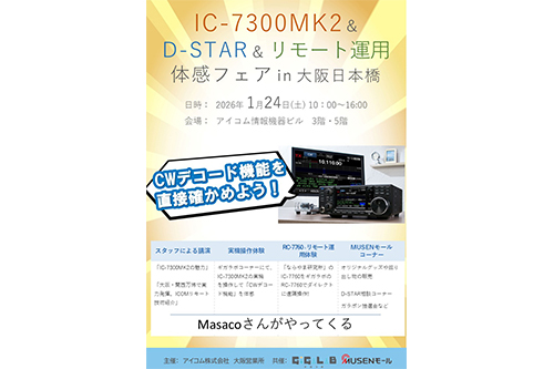 IC-7300をさらに進化させた新モデル、IC-7300MK2の魅力を存分に味わうことができる特別なイベントが大阪日本橋で開催される。