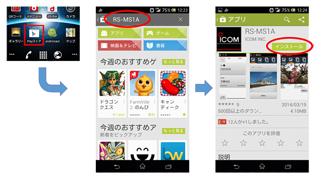 RS-MS1Aは、Android(*1)端末(*2)から無線機の一部機能をコントロールしてDRモード操作をサポートする他、画像伝送やテキスト伝送など、ID-5100の機能を拡張するためのアプリケーションです。