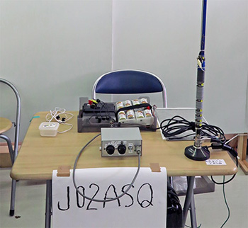 NPO法人ラジオ少年のブース。JO2ASQ清水氏の移動用セットを展示