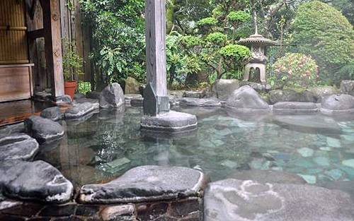 七滝温泉ホテルの露天風呂。日帰り温泉も行っており、無線従事者免許証またはQSLカードを持参すると、通常1,000円の入浴料が800円になる。ただし302号室やアンテナは利用できない