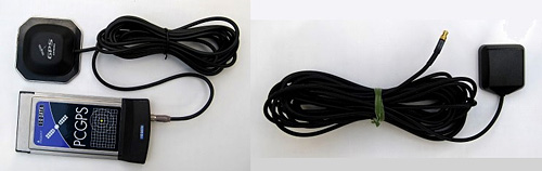 次のような接続で試験した結果、両方のGPSアンテナ共電波を受信することができました。PCカードのGPSアンテナの方が少し強く受信できましたが、一応両方とも実用になるように感じられます。