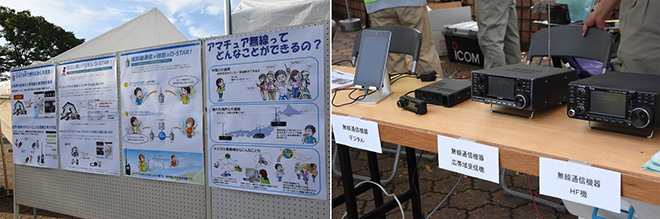 この日も、春日井アマチュア無線クラブのメンバーが、訓練会場の各所に移動し、画像を伝送するテストを繰り返していた。また、会場内のブースには転送されてきた写真を掲示し、来場者に無線通信の可能性と災害時の有用性をアピールしていた。